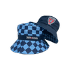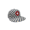 Navy brushed cotton 6-panel cap Custom Checkered brushed cotton undervisor Navy adjustable plastic snapback Produced by Talisman & Co....